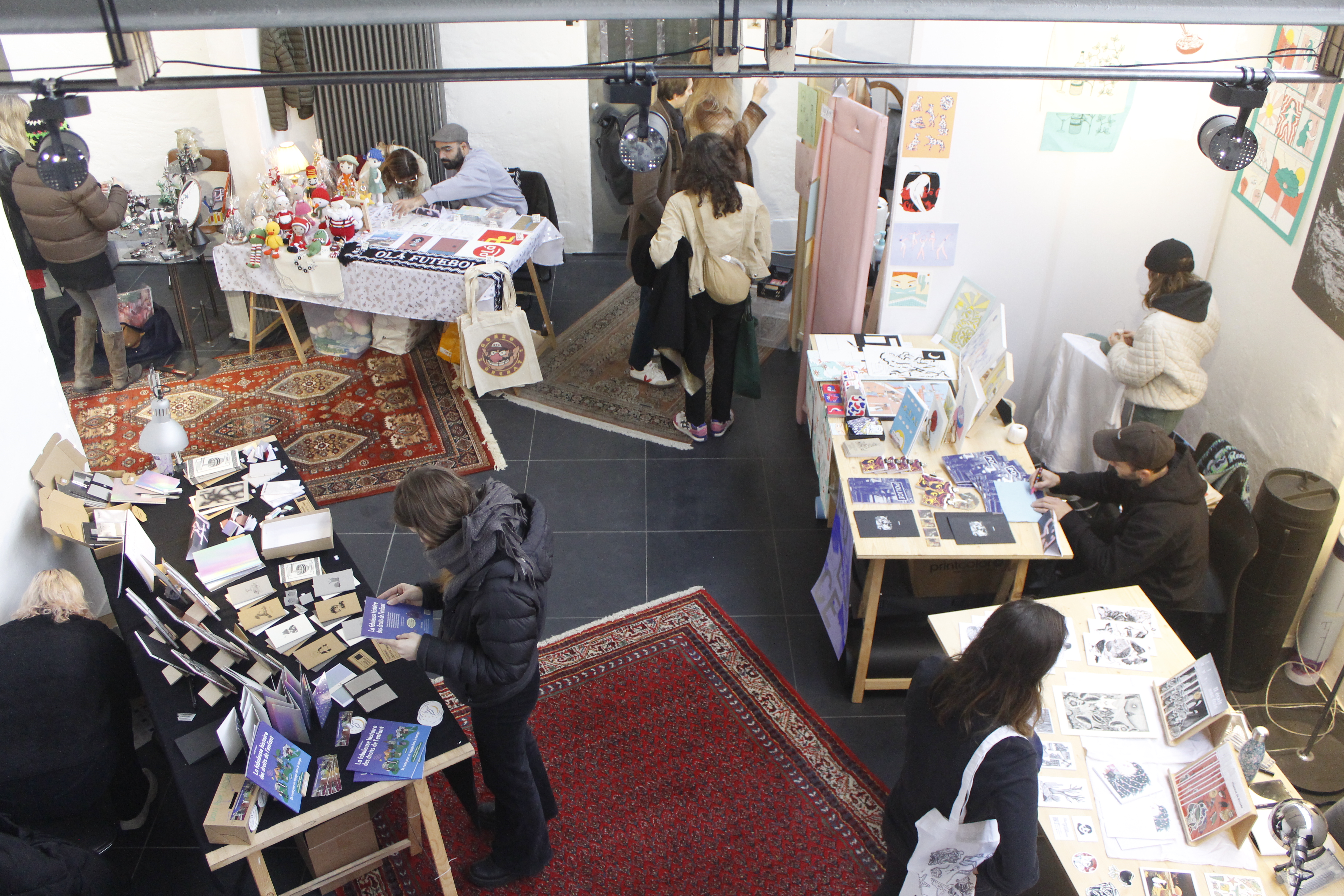 Le Collectif Kimera a organisé un Marché de Noël à l'Espace Dukat les 14 et 15 décembre 2024. Vingt artistes invité.e.x.s, accompagné.e.x.s des membres du collectif, ont présenté et vendu leurs créations uniques et artisanales, allant de la céramique aux bijoux, en passant par la broderie, les carnets, les illustrations, les objets d'art et bien plus encore. L'événement, empreint de l'esprit des fêtes, a permis aux visiteur.se.x.s de savourer des boissons et collations faites maison tout en découvrant une grande diversité d'œuvres artistiques.