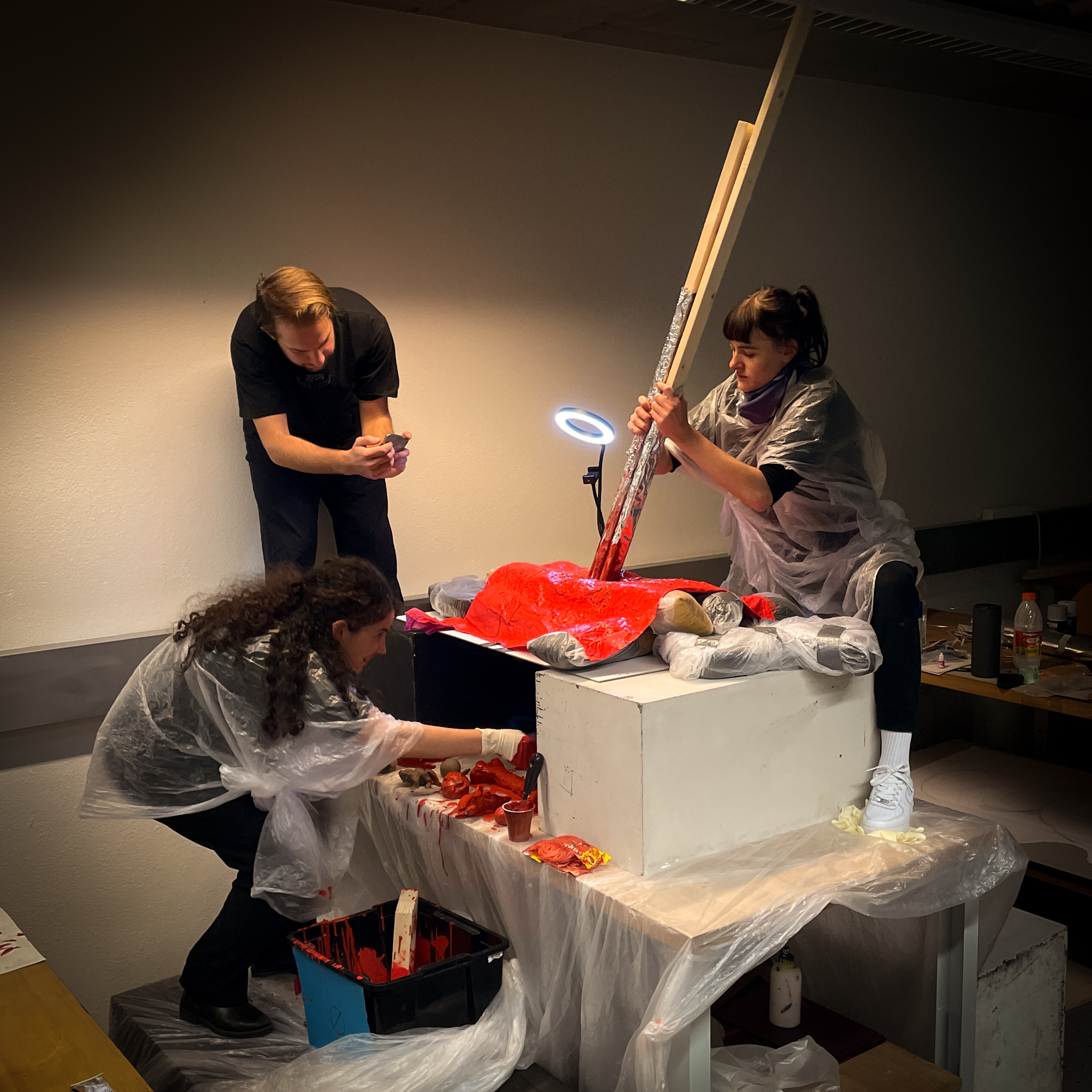 We had one day to creat a trash movie. With Giona and Linda we experimented with different techniques and created special effects in order to realise a trashy universe with fake skin, fake blood. The goal was to find ways to trick the viewer and make him/her unconfortable in front of the dissecting and mutilation of a human arm.